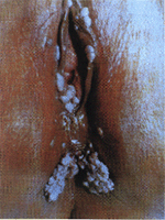 男性尖锐湿疣初期症状为细小的淡红色丘疹,以后逐渐增大,数目增多,表面隆起,多数质地脆而硬,高低不平的疣状增生,临床上依其形态分为蕈状、鸡冠状、菜花状、乳头状。尖锐湿疣初期症状体表面显红色或污灰色或正常皮色,局部湿润,部分病人尖锐湿疣初期症状感到阴部瘙痒,性交时疼痛或出血,由于自觉或不自觉的搔抓,可使疣体破损,形成糜烂,出现渗液而继发感染。