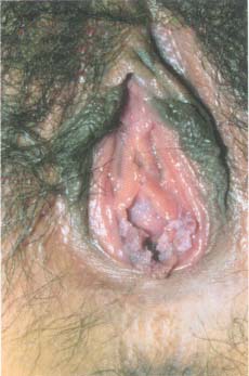 女性尖锐湿疣初期症状一般表现为为小的淡红色丘疹,菜花,肉芽状疙瘩后逐渐长大,表面呈凹凸不平的柔软乳头样病变,有分泌物浸渍可呈灰白色,污灰色或红色。时间较久者表面可有糜烂渗液,有时因有痒感,而搔抓继发细菌性感染,表面出现脓性分泌物,有臭味和疼痛。